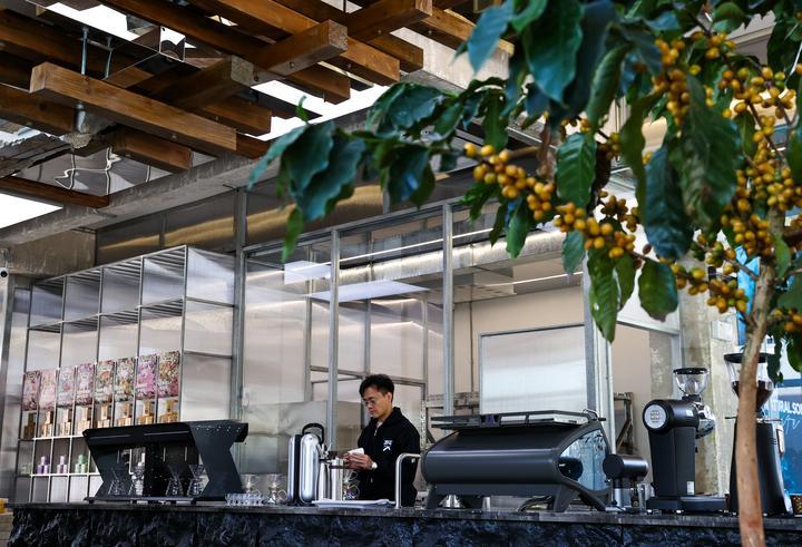 2025年12月10日,旅居云南的韓君瑋在位于昆明的南來盛咖啡店內(nèi)制作咖啡。韓君瑋自清華大學畢業(yè)后,已在咖啡行業(yè)耕耘十余年。2024年,他受聘成為云南一家老字號咖啡品牌的品牌總顧問,從此投身到云南咖啡的產(chǎn)品研發(fā)和品牌推廣工作中。一年多來,他每月都會來到昆明,短則幾天,長則數(shù)周,開啟了一種“半旅居、半工作”的生活模式?!霸颇巷L景優(yōu)美、氣候宜人,我很享受這樣的狀態(tài)。”韓君瑋說。