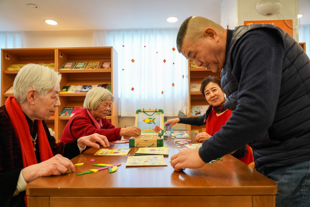 2月10日,社區(qū)內(nèi)老年人玩益智游戲。