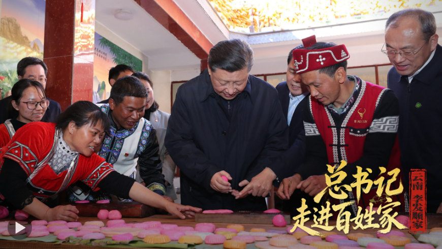 2020年春節(jié)前夕,習(xí)近平總書記走進(jìn)云南騰沖市清水鄉(xiāng)三家村中寨司莫拉佤族村,同村民李發(fā)順一家制作當(dāng)?shù)毓?jié)日傳統(tǒng)食品大米粑粑??倳浺贿B做了兩個(gè),笑著說(shuō):“摁了個(gè)福字,再來(lái)一個(gè)喜字,有福有喜?!?/p>