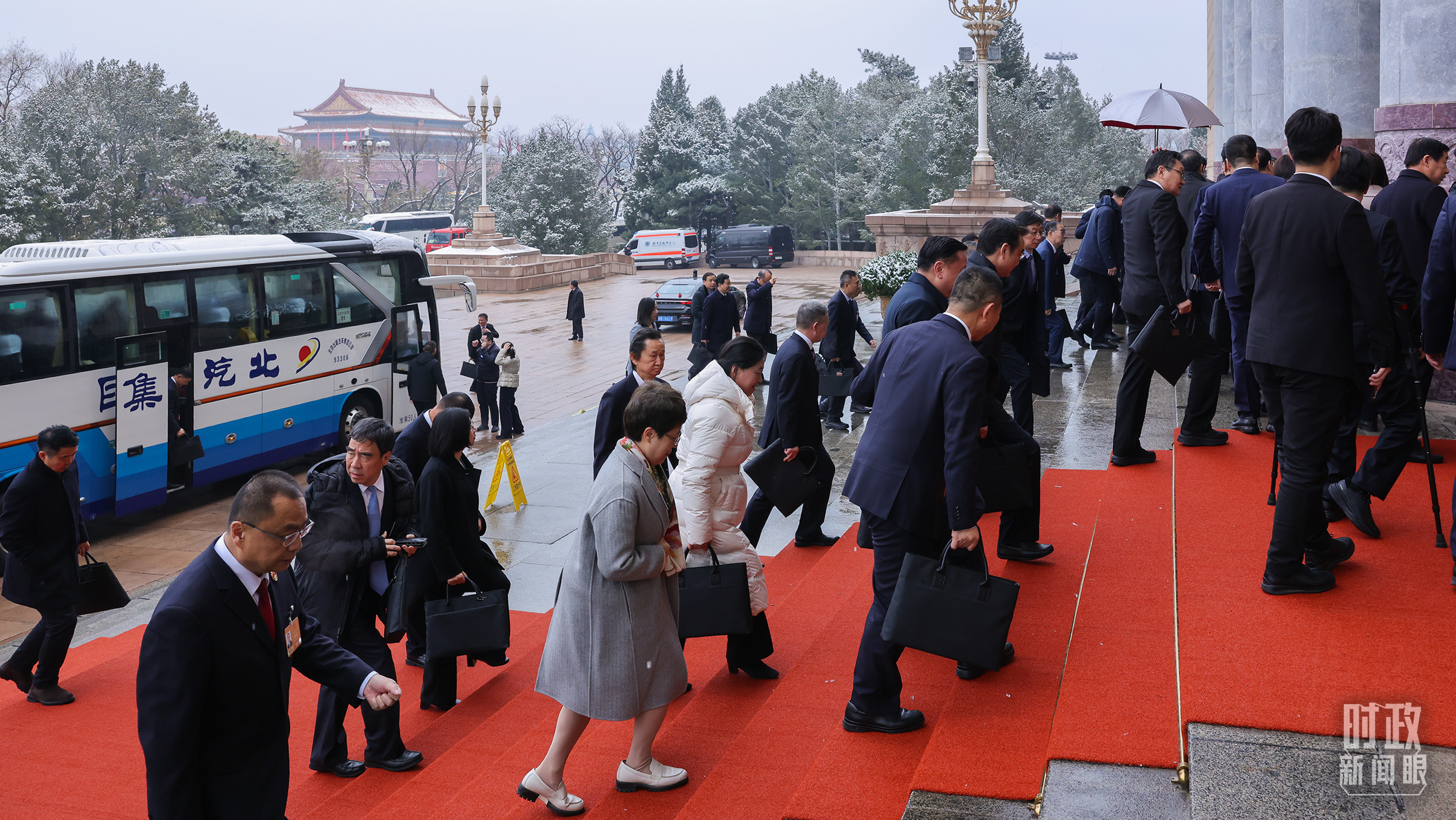 江蘇代表團(tuán)抵達(dá)人民大會堂。(江蘇省廣播電視總臺記者張正拍攝)