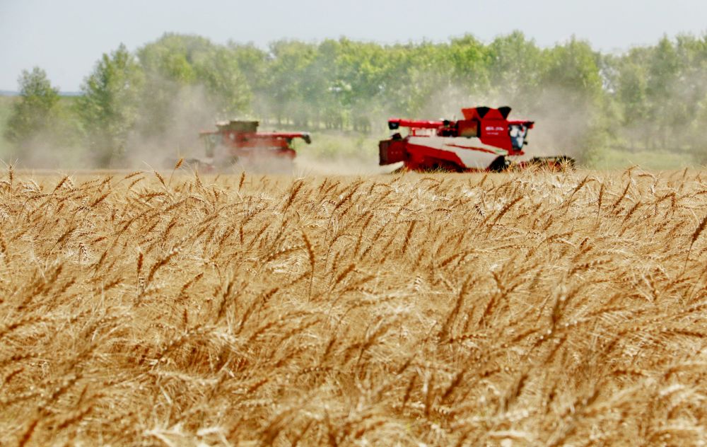 2025年8月5日,位于黑龍江省五大連池市的大慶油田農(nóng)場調動多臺聯(lián)合收割機搶收小麥。新華社發(fā)(陸文祥 攝)