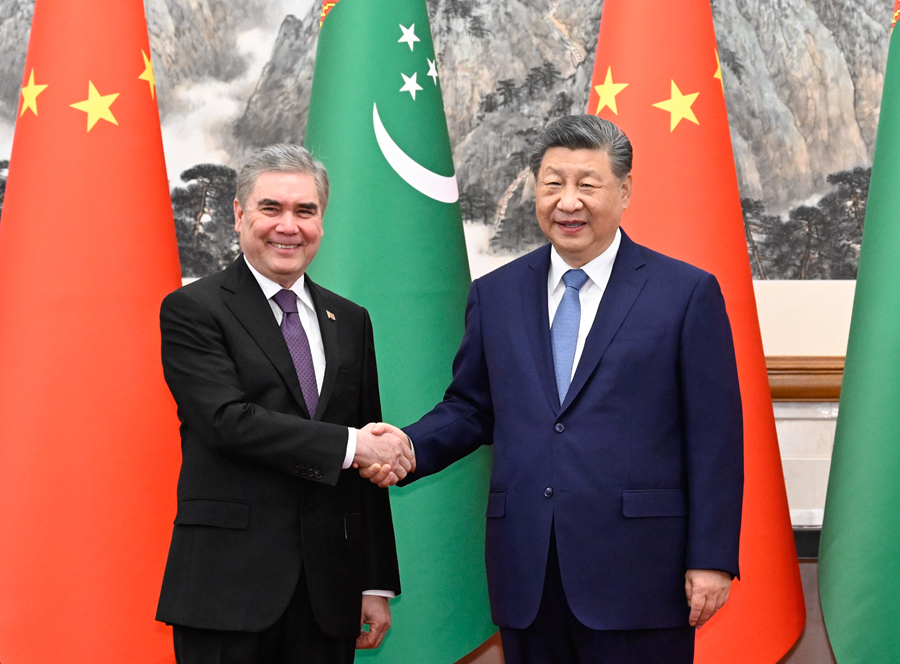 3月18日下午,國家主席習(xí)近平在北京釣魚臺國賓館會見來華進(jìn)行友好訪問的土庫曼斯坦民族領(lǐng)袖、人民委員會主席別爾德穆哈梅多夫。新華社記者 翟健嵐 攝