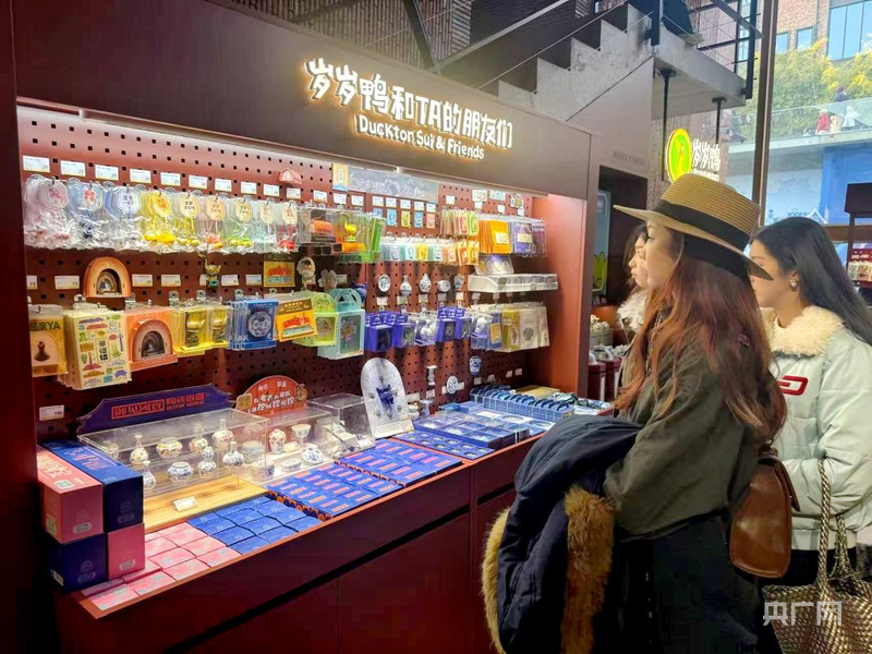 游客正在選購(gòu)“歲歲鴨”相關(guān)文創(chuàng)產(chǎn)品(央廣網(wǎng)記者 胡斐 攝)
