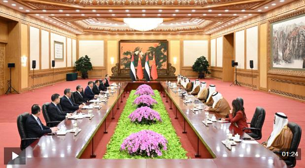 習(xí)近平指出,阿聯(lián)酋是中國的全面戰(zhàn)略伙伴,中方始終高度重視發(fā)展中阿關(guān)系。當(dāng)前,世界之變、時代之變、歷史之變正以前所未有的方式展開,人類社會面臨和平還是戰(zhàn)爭、團(tuán)結(jié)還是對抗、發(fā)展還是衰退的歷史抉擇。中國和阿聯(lián)酋作為全球南方重要成員,有必要加強協(xié)調(diào)、增進(jìn)合作,打造更加穩(wěn)固堅韌、富有活力的中阿全面戰(zhàn)略伙伴關(guān)系。