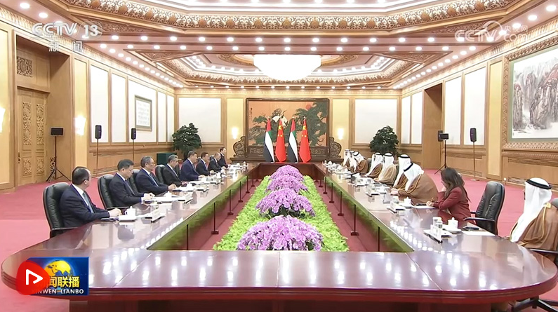 習(xí)近平指出,阿聯(lián)酋是中國的全面戰(zhàn)略伙伴,中方始終高度重視發(fā)展同阿聯(lián)酋的關(guān)系。在雙方共同努力下,中阿關(guān)系保持健康穩(wěn)定發(fā)展,政治互信不斷加深,務(wù)實(shí)合作穩(wěn)步推進(jìn),人文交流豐富多彩。鞏固和提升中阿關(guān)系是雙方的堅(jiān)定共識,符合兩國人民期待。中方愿同阿方攜手同行,打造更加穩(wěn)固堅(jiān)韌、富有活力的中阿全面戰(zhàn)略伙伴關(guān)系。雙方要繼續(xù)在涉及彼此核心利益和重大關(guān)切問題上相互支持,保持高層交往,筑牢戰(zhàn)略互信。加強(qiáng)發(fā)展戰(zhàn)略對接,在能源、投資、貿(mào)易、科技等領(lǐng)域深挖潛力,深化互利合作。推動(dòng)教育、民航、旅游等合作取得更大進(jìn)展,密切人文交流,夯實(shí)民意基礎(chǔ)。在聯(lián)合國、金磚國家等多邊平臺增進(jìn)協(xié)調(diào)合作,以中阿關(guān)系的穩(wěn)定性應(yīng)對國際和地區(qū)形勢的不確定性,共同推動(dòng)構(gòu)建人類命運(yùn)共同體。