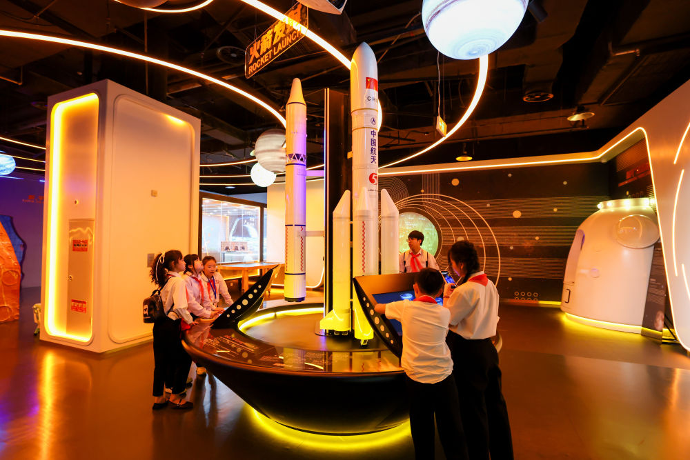 4月14日,越南青少年在位于北京的中國(guó)宋慶齡青少年科技文化交流中心了解航天知識(shí)。