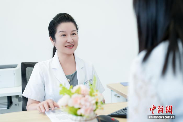 圖為海南成美醫(yī)院副院長、心血管內(nèi)科主任醫(yī)師鄭茵正在接診患者?!?海南成美醫(yī)院 供圖)