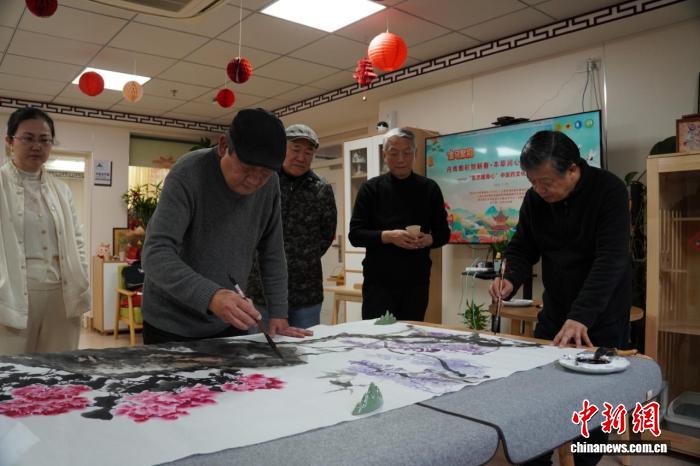 書畫家們?cè)诂F(xiàn)場(chǎng)創(chuàng)作出寧?kù)o悠遠(yuǎn)的山水、生機(jī)盎然的花卉等作品。(同濟(jì)大學(xué)附屬精神衛(wèi)生中心供圖)