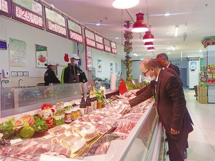 市民在超市購買鮮肉。記者 央金卓瑪 攝
