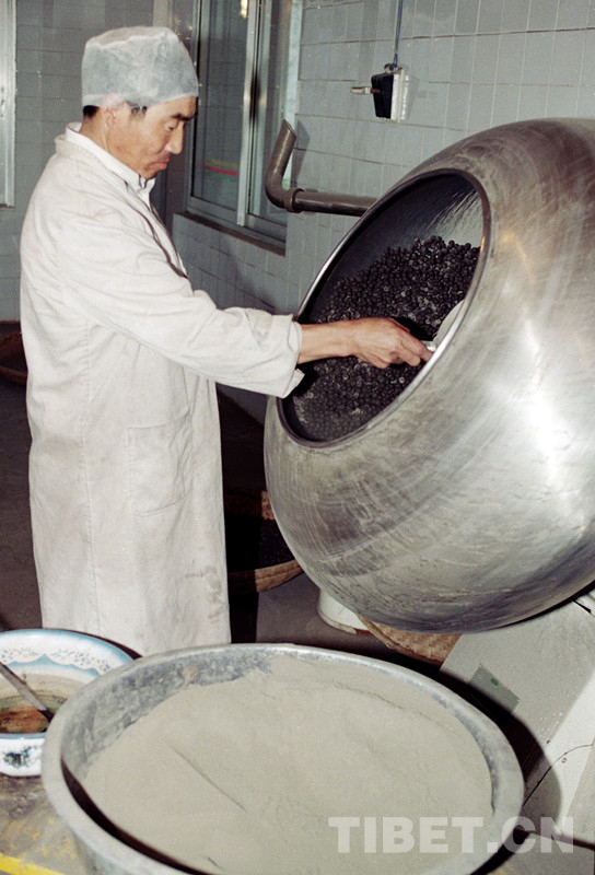 這是西藏昌都地區(qū)利民藏藥廠工人正在生產(chǎn)藏藥。該藏藥廠曾被人事部和國(guó)家醫(yī)藥管理局授予全國(guó)醫(yī)藥系統(tǒng)先進(jìn)單位稱(chēng)號(hào)(唐召明1998年攝)