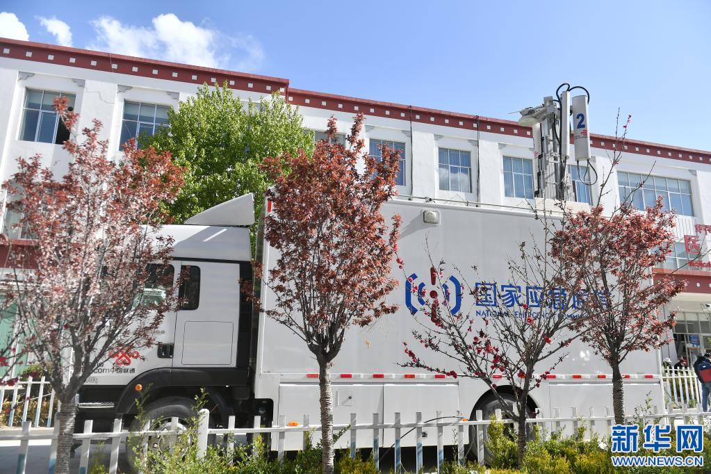 這是4月19日在拉薩市人民醫(yī)院拍攝的保障遠(yuǎn)程骨科手術(shù)順利進(jìn)行的通訊保障車輛。新華社記者 孫瑞博 攝