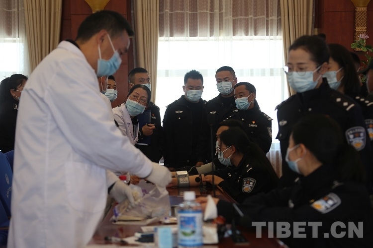 圖為醫(yī)生為拉薩邊檢站民警體檢 攝影:王佳豪