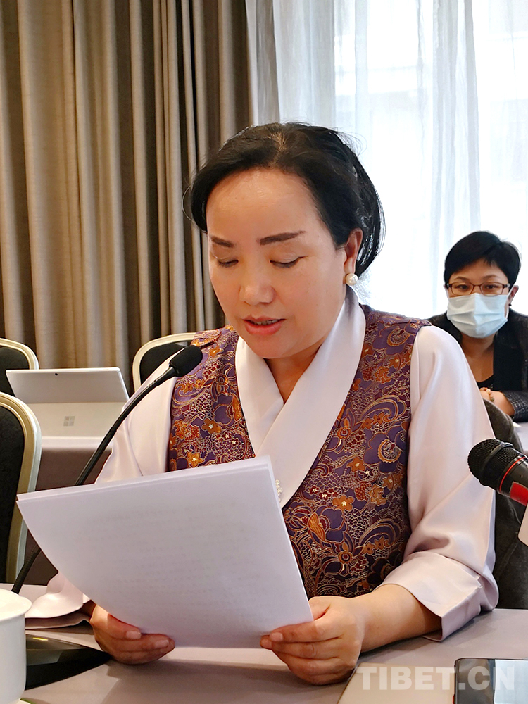 圖為全國(guó)政協(xié)委員、西藏藏醫(yī)藥大學(xué)副教授明吉措姆發(fā)言 圖片由受訪者提供