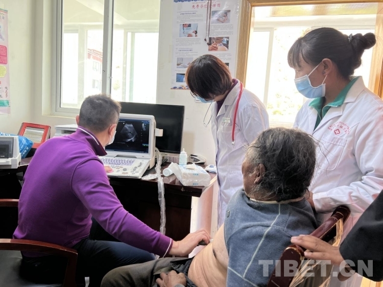 “彩超呢?”北京上地醫(yī)院院長張宇在衛(wèi)生院工作人員的帶領(lǐng)下來到衛(wèi)生院二樓為75歲的桑旦江措老人進(jìn)行胸部彩超檢查,“霍主任(中國中醫(yī)科學(xué)院望京醫(yī)院心內(nèi)科主任)懷疑他有心衰,患者不能平臥睡覺、走路氣喘、雙腿腫脹,所以我想通過超聲印證一下,昨天我們也篩查了一些有心衰跡象的群眾,平時(shí)大家覺得氣喘是小問題,忍忍就好了,實(shí)際上它還是很嚴(yán)重的,要及時(shí)治療。”張醫(yī)生告訴記者,“藏族群眾對(duì)骨科和胃腸道的關(guān)注度更高,但是心臟、血管、糖尿病等不會(huì)立馬表現(xiàn)出來的慢性病不太重視,這樣往往會(huì)錯(cuò)過最佳的治療時(shí)間。所以我們應(yīng)該通過講座和培訓(xùn),一方面要增強(qiáng)群眾的健康意識(shí),另一方面也要培養(yǎng)當(dāng)?shù)赜玫蒙?、留得住的技術(shù)型人才?!?/p>