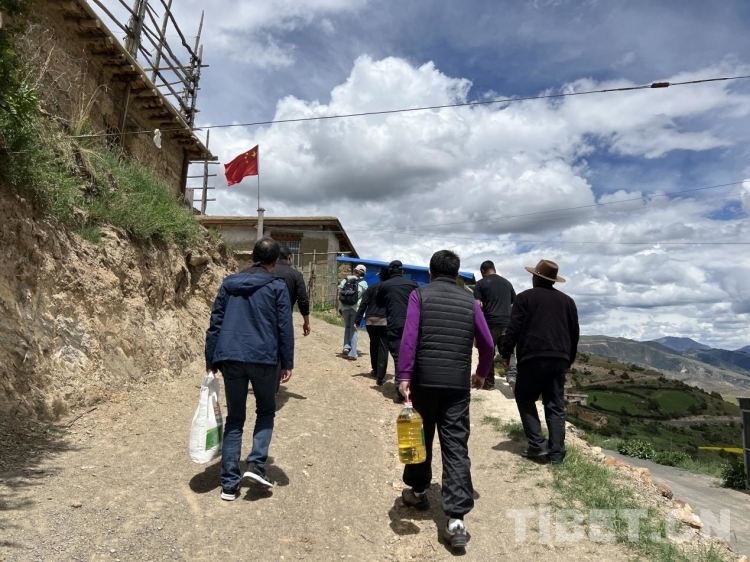 圖為義診團(tuán)專家代表進(jìn)村入戶慰問困難群眾 攝影:德吉卓瑪