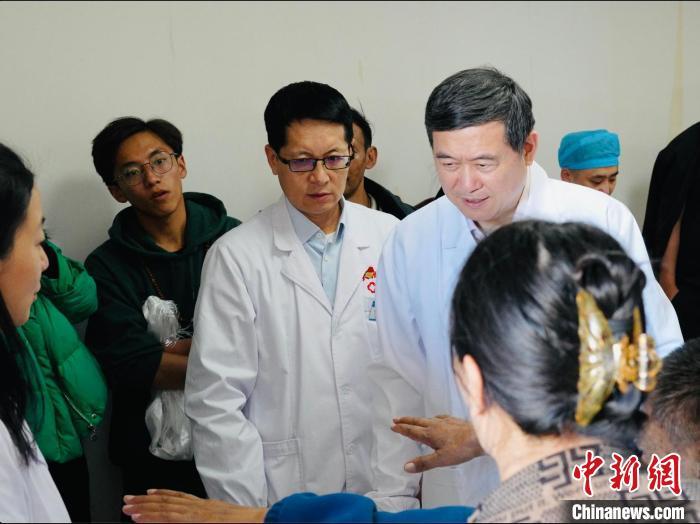 圖為中國工程院院士、清華大學(xué)附屬北京清華長庚醫(yī)院院長董家鴻(右)在青海診療。(資料圖)黃錦匯 供圖