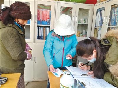 上圖:駐村工作隊隊員為村民建立健康檔案。本報記者 王菲 攝