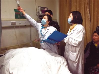 圖為近日,北京大學(xué)人民醫(yī)院第三批組團(tuán)式援藏醫(yī)療隊(duì)隊(duì)長、自治區(qū)人民醫(yī)院內(nèi)分泌科副主任醫(yī)師羅櫻櫻(左一)正在查房。鄭少杰 高加庫 攝