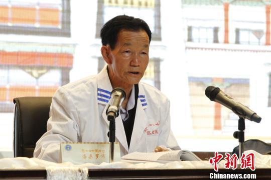 圖為西藏自治區(qū)藏醫(yī)院藏醫(yī)專家洛桑羅布在“門孜康大講堂”授課。 趙朗 攝