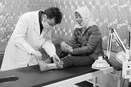 圖為12月3日下午,“四十年看青?!っ襟w記者青海行”活動第二組在青海海北藏族自治州剛察縣藏醫(yī)院參觀采訪時,一位患者正在接受針灸診療。張麗攝