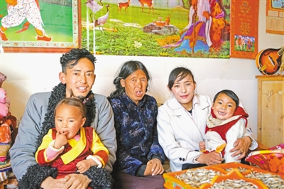 圖為來自昌都市八宿縣的向巴(右三)一家三代人在新家過新年。鹿麗娟 攝