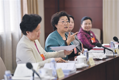 3月10日,全國政協(xié)婦聯(lián)界別在駐地舉行小組會議,討論政協(xié)工作。全國政協(xié)委員崔郁(左二)認(rèn)為,應(yīng)保證女性在基本醫(yī)療衛(wèi)生服務(wù)方面有更多獲得感。經(jīng)濟(jì)日報-中國經(jīng)濟(jì)網(wǎng)記者 高興貴攝
