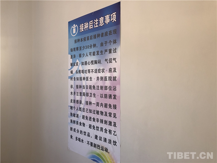 圖為爐霍縣在接種點(diǎn)張貼的新冠疫苗接種后注意事項(xiàng)海報(bào)