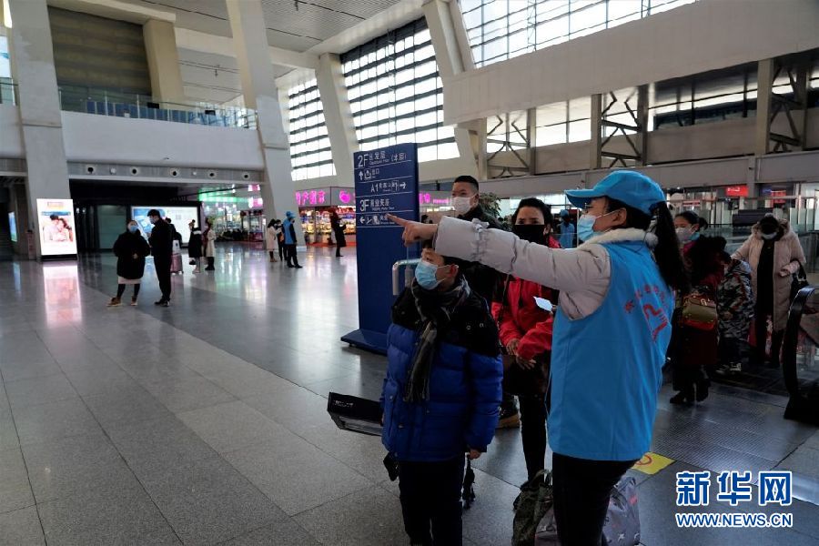 1月28日,西寧火車站志愿者在為旅客指引方向。新華社記者 陳杰 攝