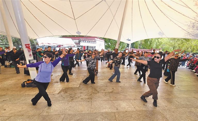 圖為市民群眾在拉薩宗角祿康公園跳舞。記者 唐斌 攝