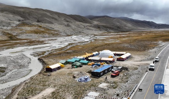 這是卓奧友峰登山大本營(yíng),科考隊(duì)員在這里開展部分急進(jìn)高原人群健康研究(10月1日攝,無(wú)人機(jī)照片)。新華社記者 晉美多吉 攝