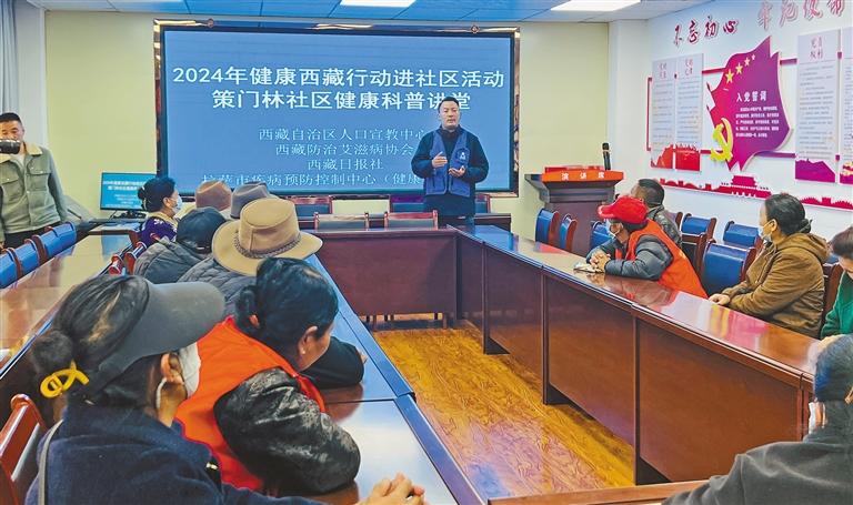 近日,西藏自治區(qū)人口宣教中心、西藏艾滋病協(xié)會、西藏日報社、拉薩市疾病預(yù)防控制中心共同舉辦2024年健康西藏行動進(jìn)社區(qū)活動。相關(guān)工作人員為城關(guān)區(qū)策門林社區(qū)居民群眾講解了關(guān)于慢病、艾滋病的防治等內(nèi)容。
