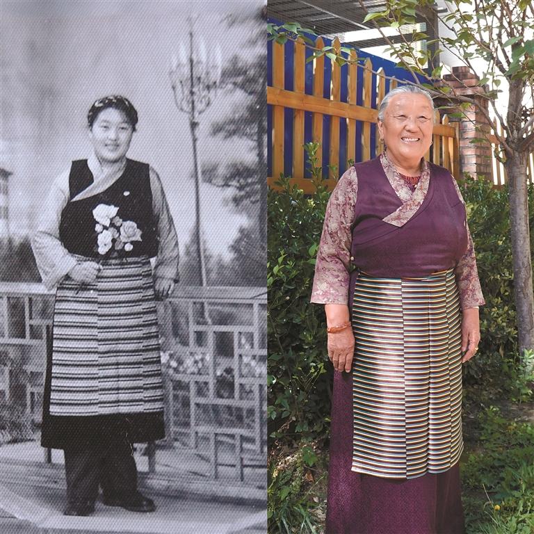 圖①:28歲的次仁卓瑪在河南進(jìn)修時留影。 (由受訪者提供)圖②:79歲的次仁卓瑪在拉薩新居留影。記者 嘎娃白瑪 丹增朗賽 攝