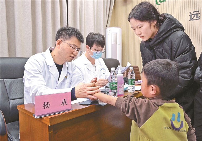 圖為北京積水潭醫(yī)院專(zhuān)家在拉薩市人民醫(yī)院為小朋友義診。記者 王敏 攝