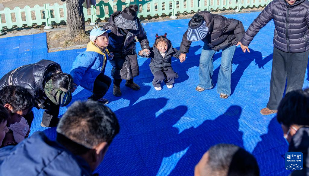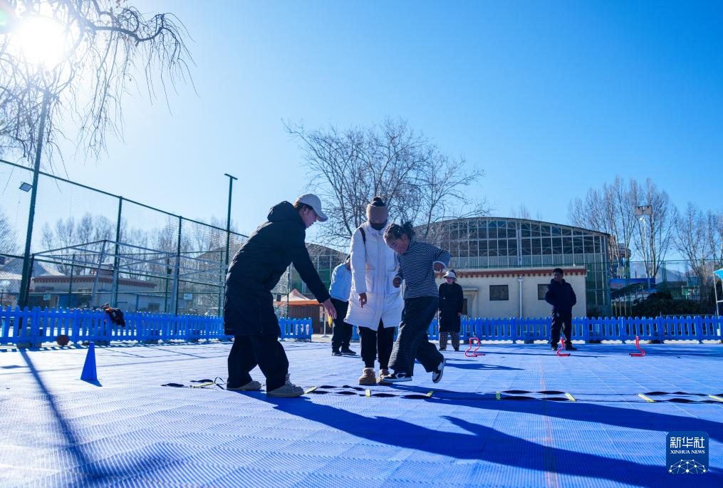 1月22日,在拉薩市全民健身體彩公園內(nèi),殘障兒童在家長陪同下參加“陽光殘障兒童公益興趣班”體適能訓(xùn)練課程。新華社記者 丁增尼達(dá) 攝