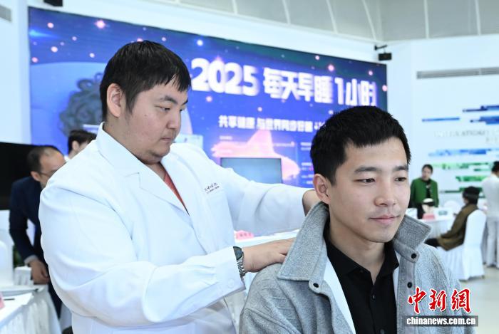 今年“世界睡眠日”當(dāng)天,醫(yī)生團(tuán)隊(duì)通過推拿等手段為民眾帶來中醫(yī)助眠體驗(yàn)。中新社記者 王剛 攝