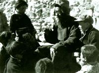 參加過1904年抗英戰(zhàn)斗的藏族戰(zhàn)士、康馬縣老人達瓦頓珠(1961年拍攝時,他已有81歲高齡)在向孩子們講述當年戰(zhàn)斗的故事
