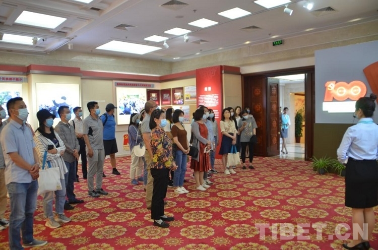 圖為中國(guó)西藏信息中心一行在展館里參觀學(xué)習(xí)
