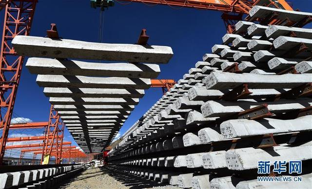2018年9月19日,在位于西藏拉薩曲水縣的中鐵十一局三公司協(xié)榮鋪架基地,用于架設川藏鐵路拉薩至林芝段(拉林鐵路)的首批軌排完成生產下線。覺果 攝