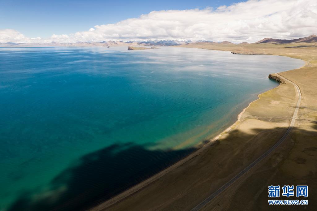這是7月12日拍攝的普莫雍錯(cuò)景色(無(wú)人機(jī)照片)。新華社記者 孫瑞博 攝