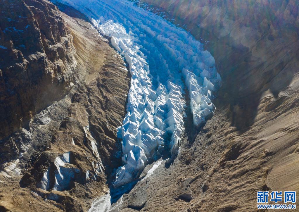 鳥瞰曲登尼瑪冰川(11月27日攝,無人機照片)。新華社記者 格桑邊覺 攝
