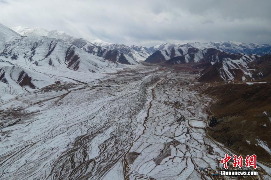 2月23日,航拍西藏林周縣楚杰寺雪后風(fēng)光。 澎波河是拉薩河的主要支流之一,位于拉薩市林周縣,是拉薩青稞主產(chǎn)區(qū)。近日,澎波河谷迎來(lái)大范圍降雪,河灘、農(nóng)田、村落、山谷等均被積雪覆蓋,猶如披上了一層“白紗”,一派高原冰雪風(fēng)光,十分壯美。江飛波 攝