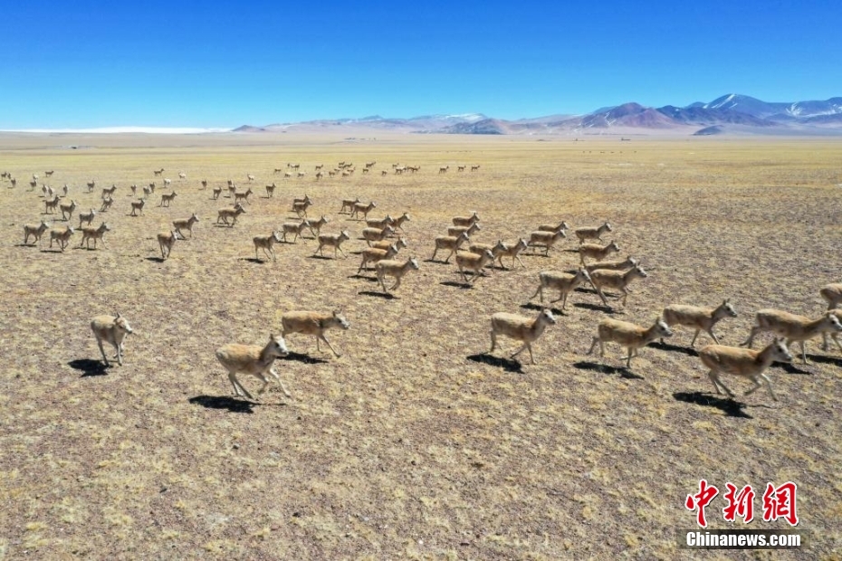 遠(yuǎn)看藏羚羊群移動(dòng),猶如“行軍”。索朗仁青 攝