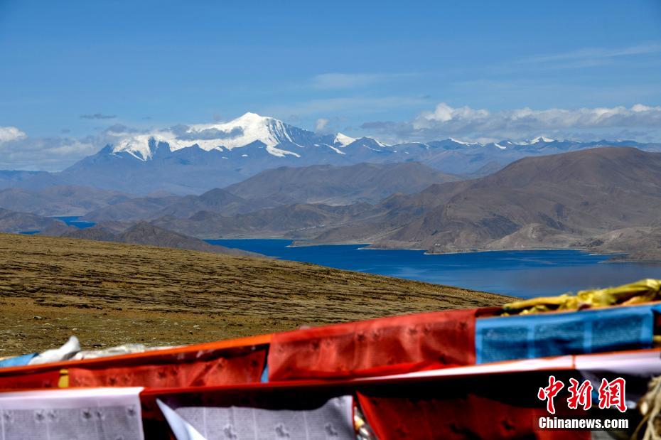 站在直拉山口俯瞰羊卓雍措,深邃藍(lán)的湖水似鑲嵌山間的藍(lán)寶石,與遠(yuǎn)處的庫(kù)拉崗日雪山形成一幅壯美圖卷。圖為羊卓雍措。 李林 攝