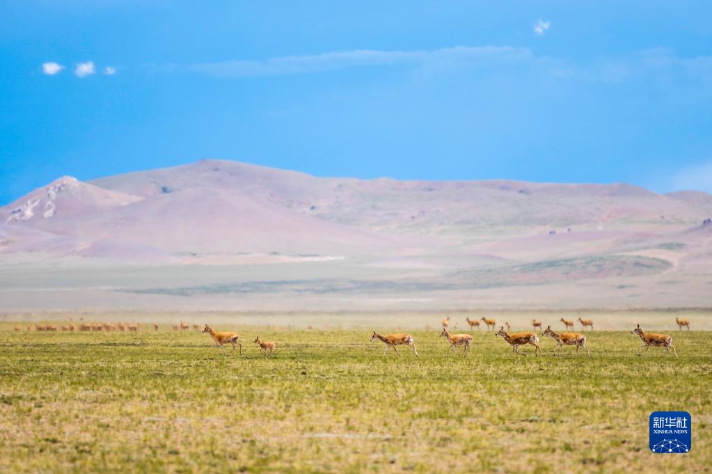 這是在羌塘國家級自然保護(hù)區(qū)內(nèi)拍攝的藏羚羊(7月11日攝)。新華社記者 周荻瀟 攝
