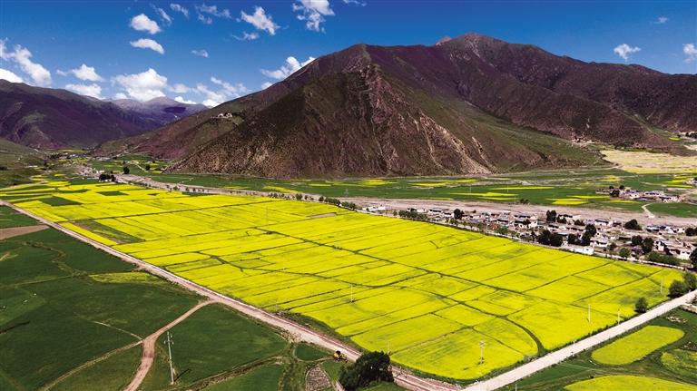 滿目金黃香萬里,三夏好景醉千山。時(shí)至七月,雪域高原上大片油菜花盛開。近年來,拉薩市墨竹工卡縣借助小油菜,全方位、多維度、立體化展示“三產(chǎn)融合”發(fā)展成果,展陳當(dāng)?shù)靥厣幕偷赜蝻L(fēng)情,推介旅游資源,吸引廣大農(nóng)牧民參與到農(nóng)、旅、文融合發(fā)展中來,吃上“旅游飯”,不斷鞏固拓展脫貧攻堅(jiān)成果同鄉(xiāng)村振興有效銜接。