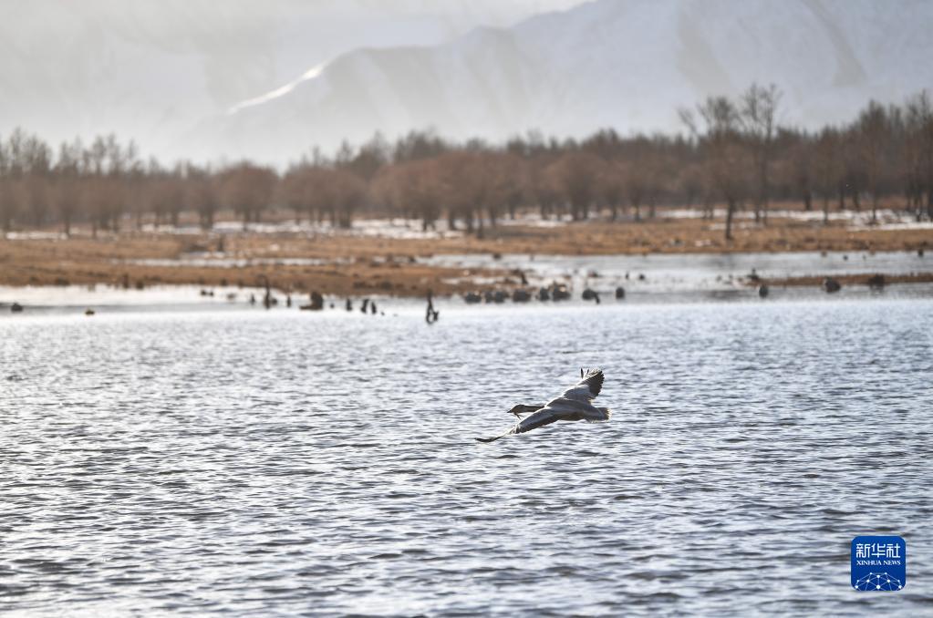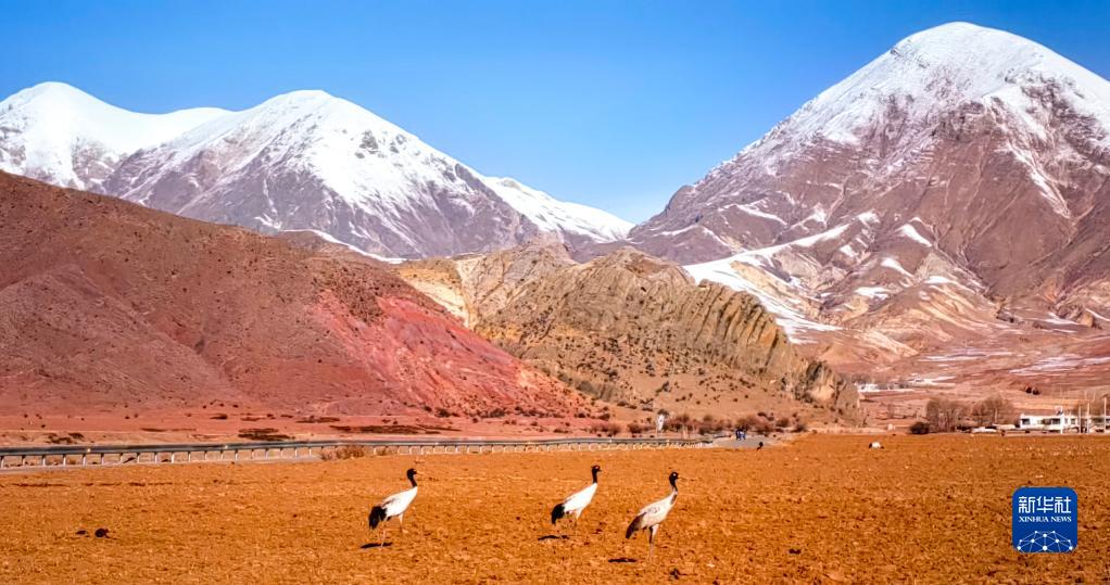 近日,西藏拉薩市各區(qū)縣迎來降雪。群山被白雪覆蓋,高原壯麗唯美。黑頸鶴、斑頭雁等翩躚起舞,拉薩河谷生機(jī)盎然。