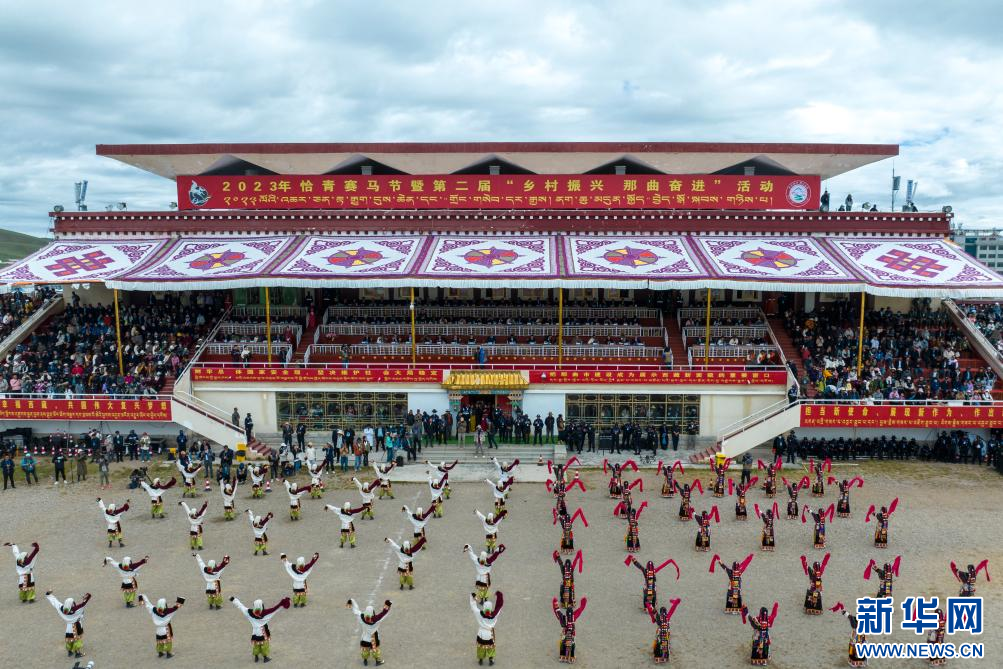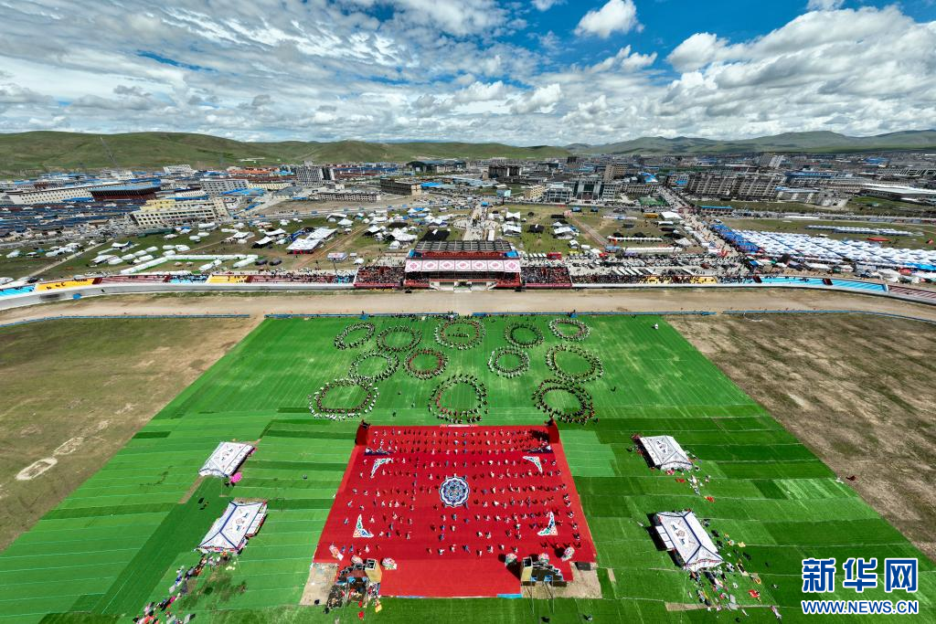 8月10日,演員在開(kāi)幕式上表演舞蹈(無(wú)人機(jī)照片)。新華網(wǎng) 旦增努布 攝
