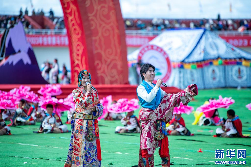 ??近日,2023年恰青賽馬節(jié)開(kāi)幕式在西藏自治區(qū)那曲市格薩爾王賽馬場(chǎng)舉行,來(lái)自那曲市各縣(區(qū))的演員和歌手共同載歌載舞。