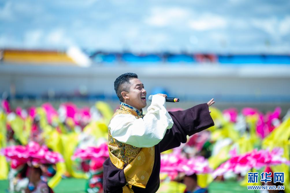 8月10日,歌手羅桑在開(kāi)幕式上唱歌。新華網(wǎng) 旦增努布 攝