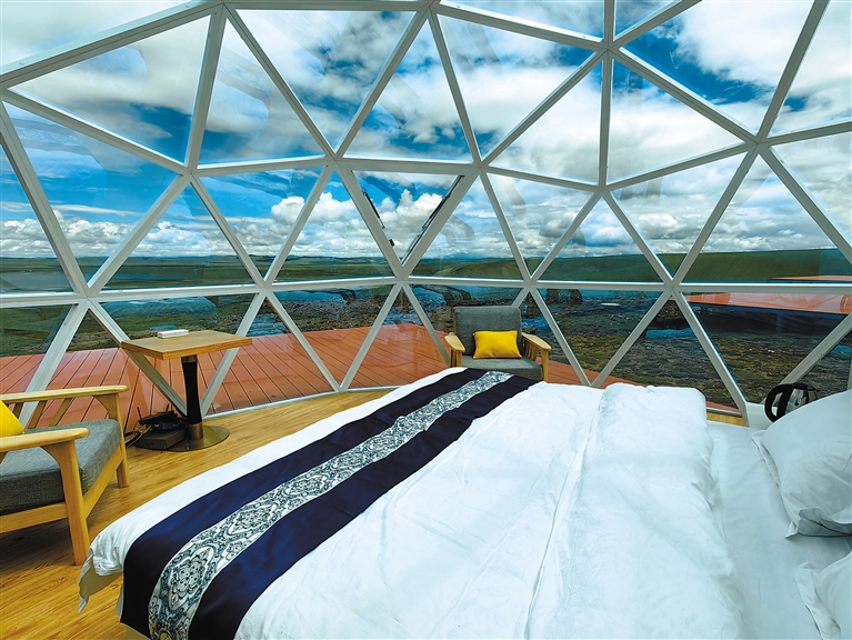 圖為夯錯濕地暗夜星空景區(qū)內(nèi)設(shè)置的觀景設(shè)備(8月25日攝)。新華網(wǎng)發(fā) 蘇思源 攝